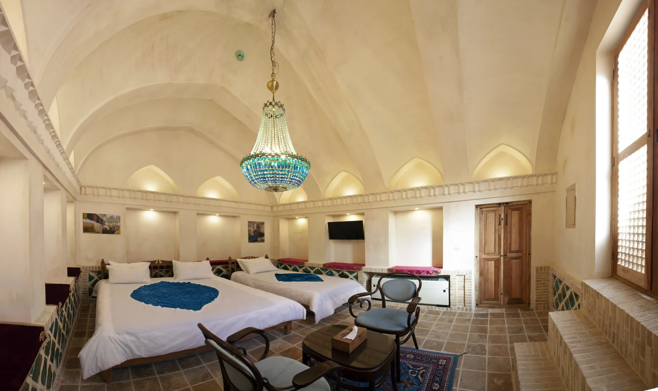 پس از سال ها افتخار میزبانی از مهمانان گرامی شهر کاشان، خانه مرشدی درسال 1402 بنایی جدید در همسایگی خود افتتاح نمود که تحت عنوان حیاط جدید خانه مرشدی معرفی میشود. حیاط جدید خانه مرشدی، درواقع اقامتگاه جدید ما می باشد که با معماری ایرانی و ایینه کاری های فاخر میزبان شما می باشد. در حیاط جدید خانه مرشدی 12 باب اتاق اقامتی که حداکثر ظرفیت 35 نفر را شامل میشود قرارگرفته و دارای یک صبحانه خوری مستقل می باشد.